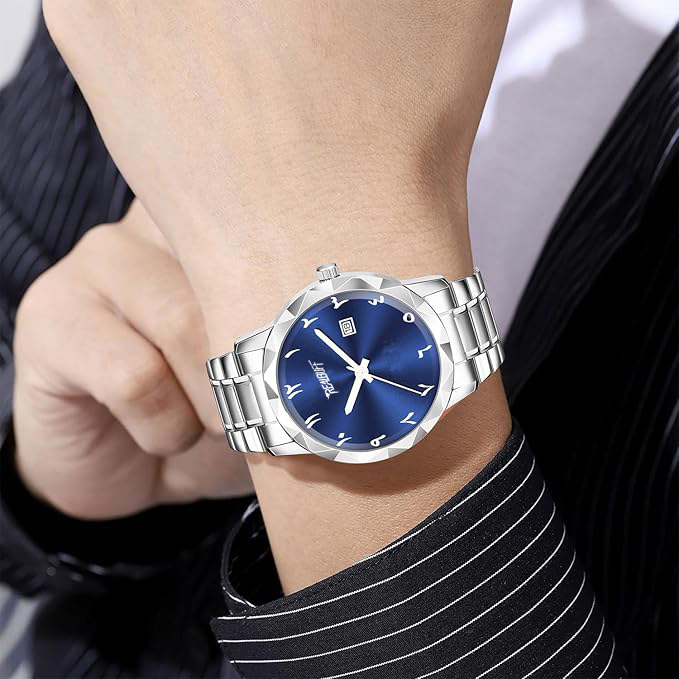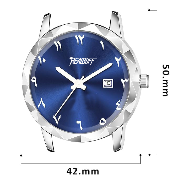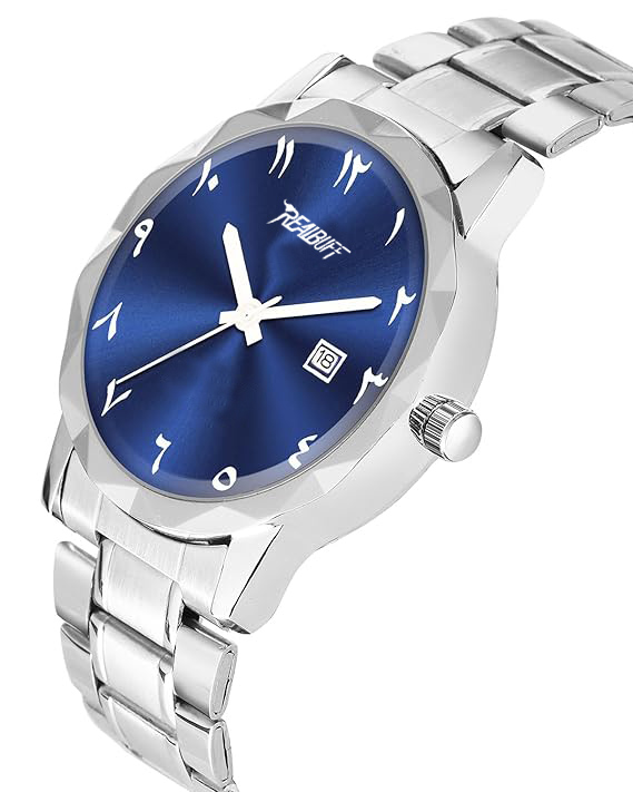 RealBuff Arabic Analog WatchRealBuff Arabic Analog Watch – For Men Steel Aura Time and Date (Blue)