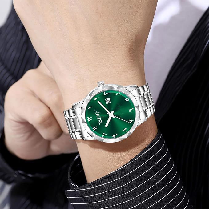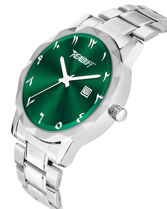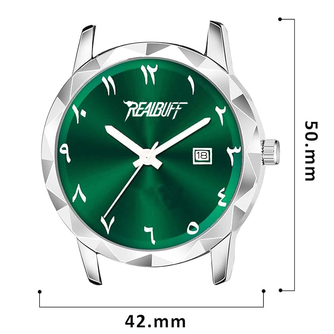 RealBuff Arabic Analog Watch – For Men Steel Aura Time and Date (Green)