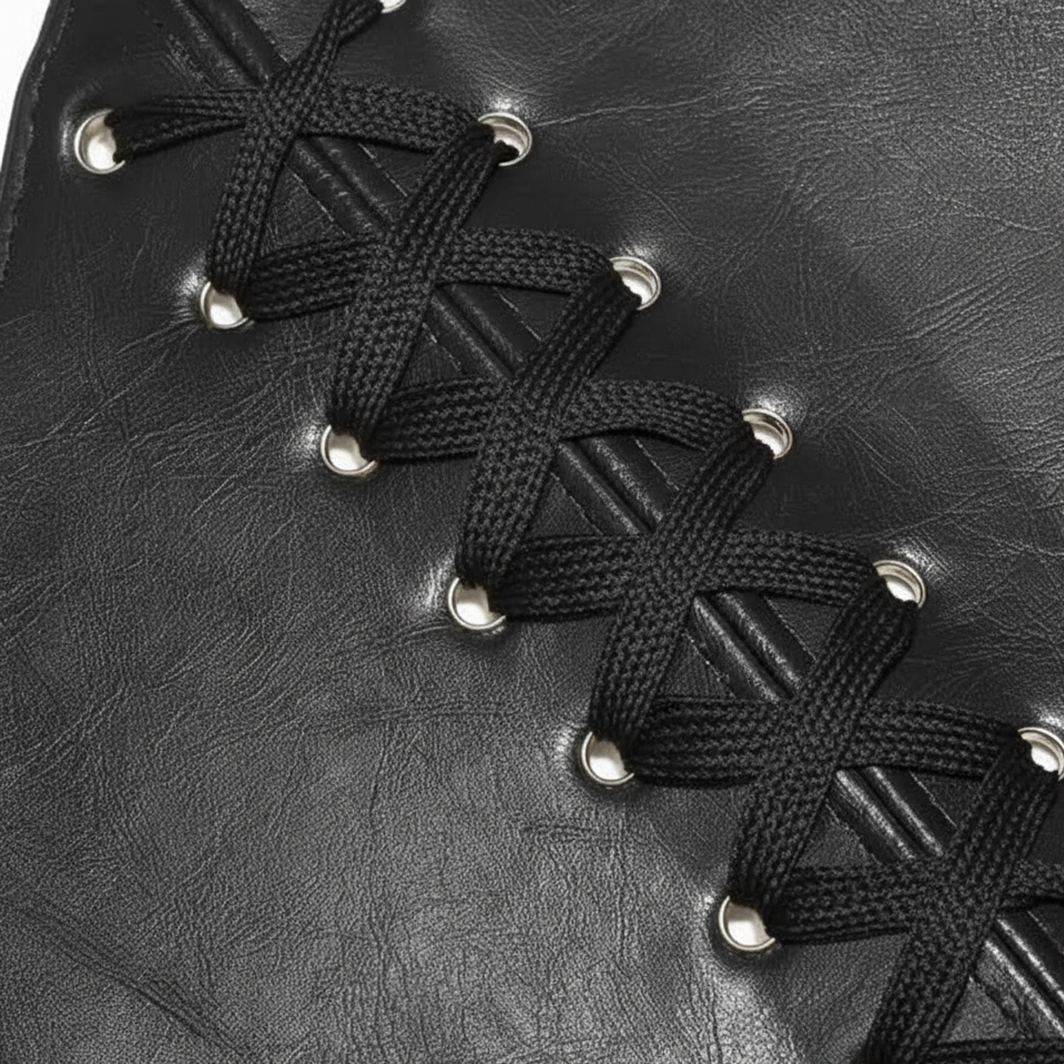 The RealBuff Artificial Leather Bustier Corset Belt is a one-size-fits-all women’s fashion item, designed with a Gothic theme and available in a classic black color. Made from high-quality artificial leather, this corset features lace-up closure for a customized fit. Perfect for adding a touch of elegance to any outfit, this corset belt is hand washable and should not be bleached or ironed.